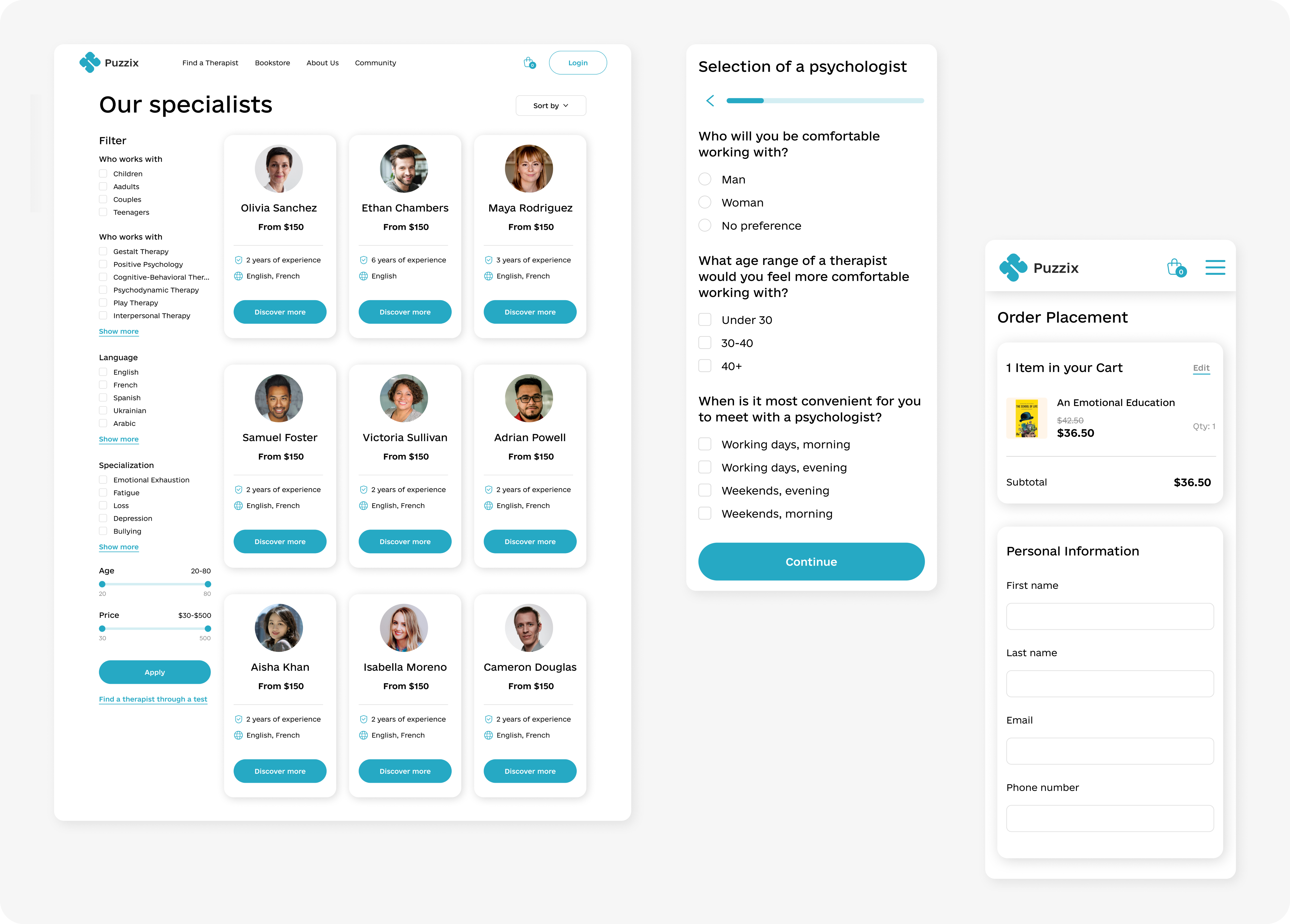 Puzzix is a concept idea for an innovative project aimed at creating a comprehensive platform that seamlessly connects people with qualified psychotherapists and psychologists, as well as a valuable resource for self-development. The platform is designed to meet the growing need for accessible mental health support and self-improvement tools in today's fast-paced world.
